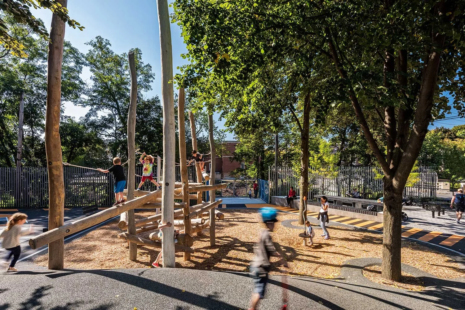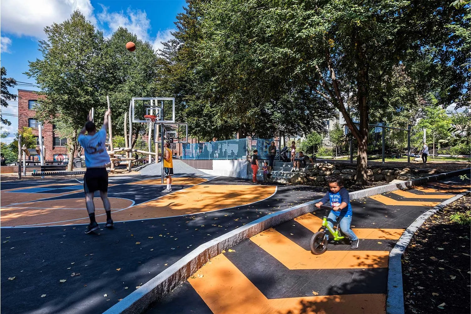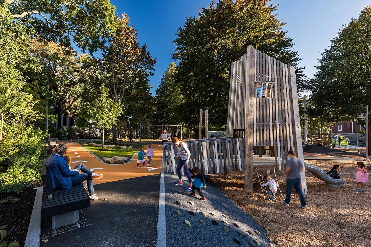 In 2015, Hoyt Sullivan was identified by the City of Somerville as a park in need of extensive renovations and upgrades. Working with the City, community, and a modest budget, KMDG developed a plan that incorporates natural materials into a contemporary design– one that increases accessibility and preserves much of the existing tree canopy with the priority of offering a variety of less-conventional experiential play opportunities.